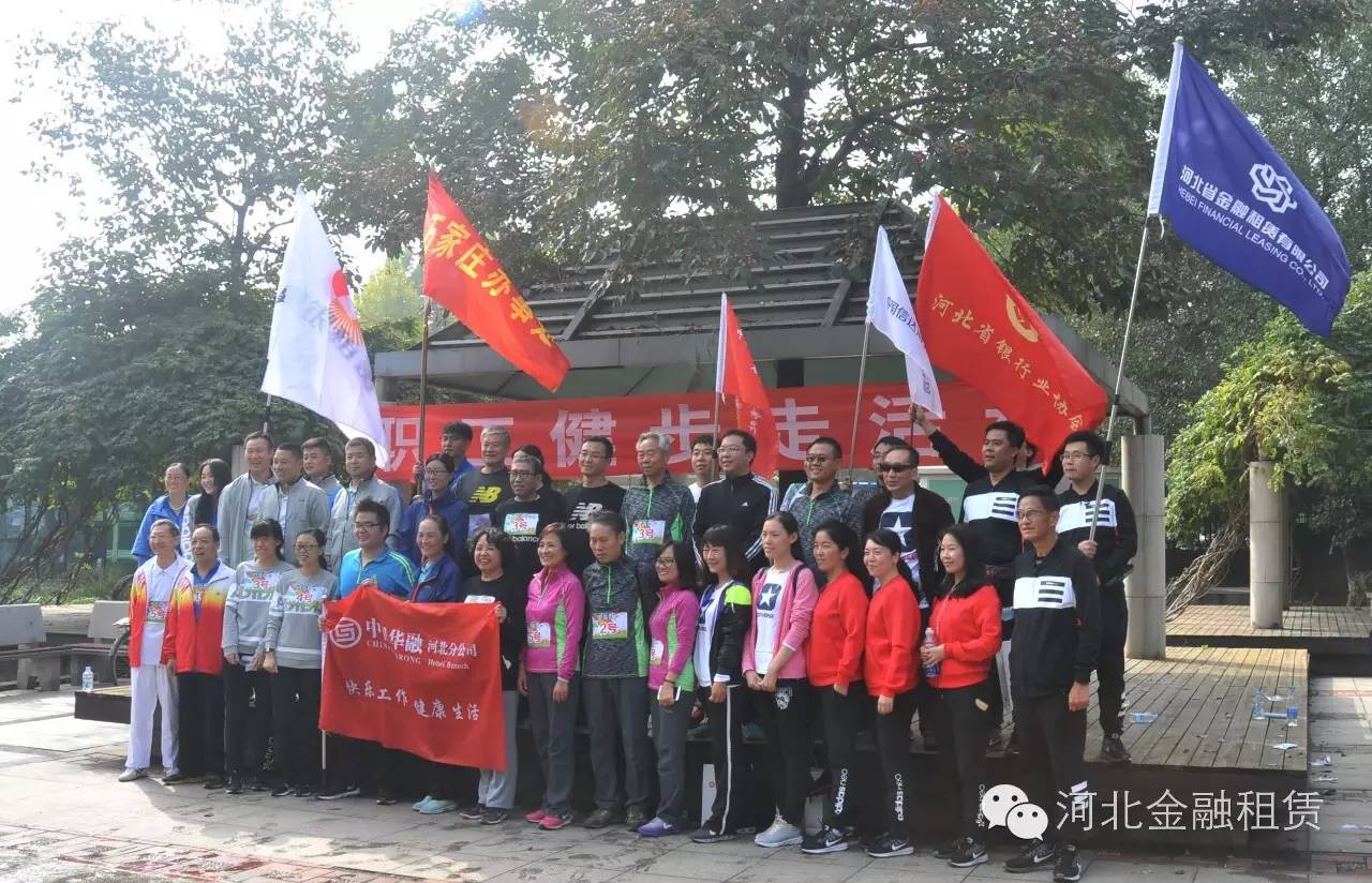為培養(yǎng)員工綠色出行、低碳環(huán)保意識(shí),讓更多員工成為健康生活方式的倡導(dǎo)者、實(shí)踐者及傳播者,河北金租10月16日參加了河北省銀行業(yè)協(xié)會(huì)組織的健步走比賽。本次活動(dòng)在石家莊市植物園舉行,除多家金融機(jī)構(gòu)隊(duì)員組隊(duì)參加外,河北省銀行業(yè)協(xié)會(huì)常務(wù)副會(huì)長(zhǎng)孫志軍、河北銀監(jiān)局非銀處處長(zhǎng)張建印等領(lǐng)導(dǎo)也披掛上陣,與參賽選手同行鼓勁。