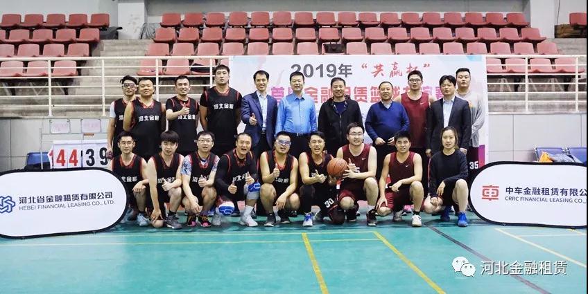 ▲河北金租董事長徐敏?。ê笈庞椅澹⒈O(jiān)事長肖剛(后排右六)、副總裁李永德(后排右七)、工會主席石拴江(后排右四)等與籃球隊合影。