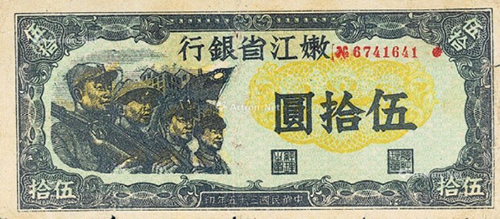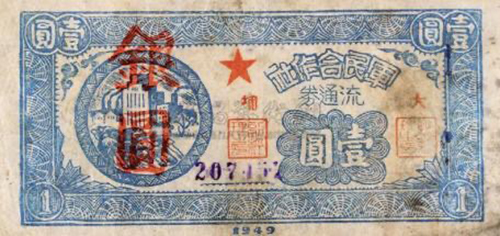 在抗戰(zhàn)勝利結(jié)束時(shí),山東解放區(qū)已有極大發(fā)展,有12.5萬(wàn)平方公里的面積,占山東總面積的92%,擁有2400萬(wàn)人口,占山東總?cè)丝诘?0%。1948年10月,山東的北海銀行幣與華北的冀南銀行幣、晉察冀邊區(qū)幣固定比價(jià)互相流通,1948年11月16日起,北海銀行幣與華中銀行幣等價(jià)流通。這一時(shí)期的北海銀行幣均不加蓋地名,便于山東以外的地區(qū)流通。1948年12月1日,華北銀行、北海銀行、西北農(nóng)民銀行合并,在石家莊成立中國(guó)人民銀行,但因工作的需要,北海銀行繼續(xù)營(yíng)業(yè),1949年1月底開始回收北海銀行幣,同年11月1日改稱中國(guó)人民銀行山東分行,至此,北海銀行完成了它的歷史使命宣告結(jié)束。