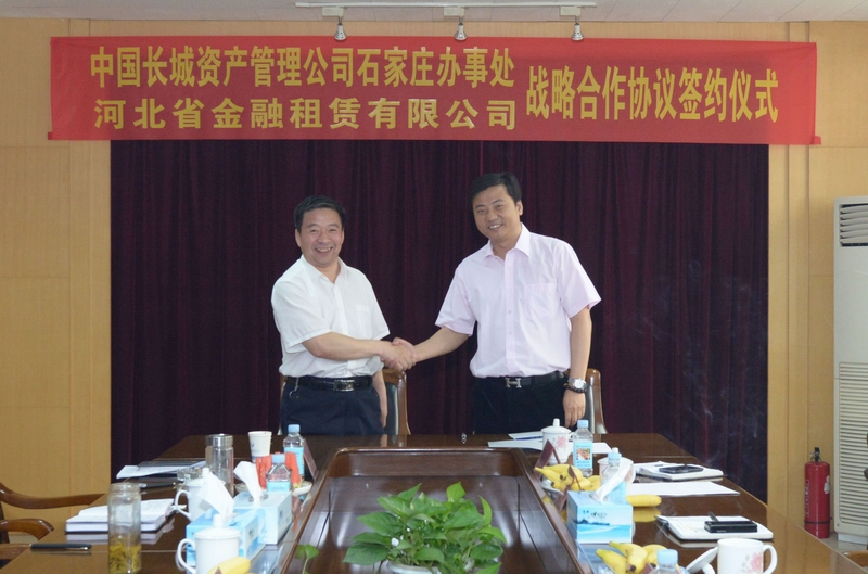 2013年5月31日,為推動(dòng)各領(lǐng)域業(yè)務(wù)合作,促進(jìn)雙方共同發(fā)展,中國(guó)長(zhǎng)城資產(chǎn)管理公司石家莊辦事處總經(jīng)理齊銀庚一行與公司總裁徐敏俊及各位領(lǐng)導(dǎo)進(jìn)行了戰(zhàn)略合作洽談會(huì)。在會(huì)上,雙方領(lǐng)導(dǎo)本著平等互利、優(yōu)勢(shì)互補(bǔ)、資源共享的原則友好協(xié)商,決定建立全面業(yè)務(wù)合作關(guān)系。并就風(fēng)險(xiǎn)控制、客戶拓展、資產(chǎn)業(yè)務(wù)等方面進(jìn)行了廣泛的交流,對(duì)彼此未來(lái)的合作前景和方向深入地交換了意見。雙方將依托各自的行業(yè)特點(diǎn)和業(yè)務(wù)范圍,在資產(chǎn)管理、信托業(yè)務(wù)、金融租賃、融資業(yè)務(wù)等方面進(jìn)行全面合作。努力實(shí)現(xiàn)優(yōu)勢(shì)互補(bǔ)、大力促進(jìn)協(xié)同發(fā)展。當(dāng)天雙方正式簽署了《戰(zhàn)略合作協(xié)議》,確立了合作關(guān)系。